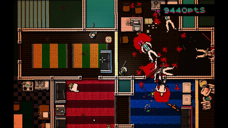 First impressions are often deal-breakers for so many, especially for those that look for the next video game to play. It can seem quite obvious that when anyone looks at a single glance at a screenshot for Dennation Games’ Hotline Miami, they see a pixelated 2D top down game that seems to take place inside a decently detailed building layout that also takes place in an ever-color-changing gradient. From a basic perspective, it’s not enough to win over an audience; that is until you see the game for what it truly is and discover that it’s more than looks that make it an indie gem.