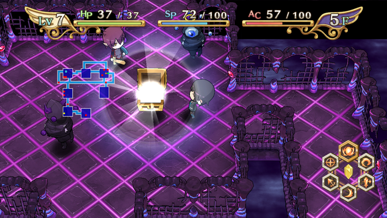 The Awakened Fate Ultimatum is a roguelike RPG developed by Nippon Ichi Software. You take control of Shin, a boy who is anti-social and hates humans. After he has a a strange dream while sleeping on his school rooftop he wanders home and gets cornered in an alley and ambushed by devils. He has no understanding why he was struck down and killed as he wakes up a few hours later learning that he was revived by a crystal that turns him into the new god and that he must fight in the war between angels and devils.