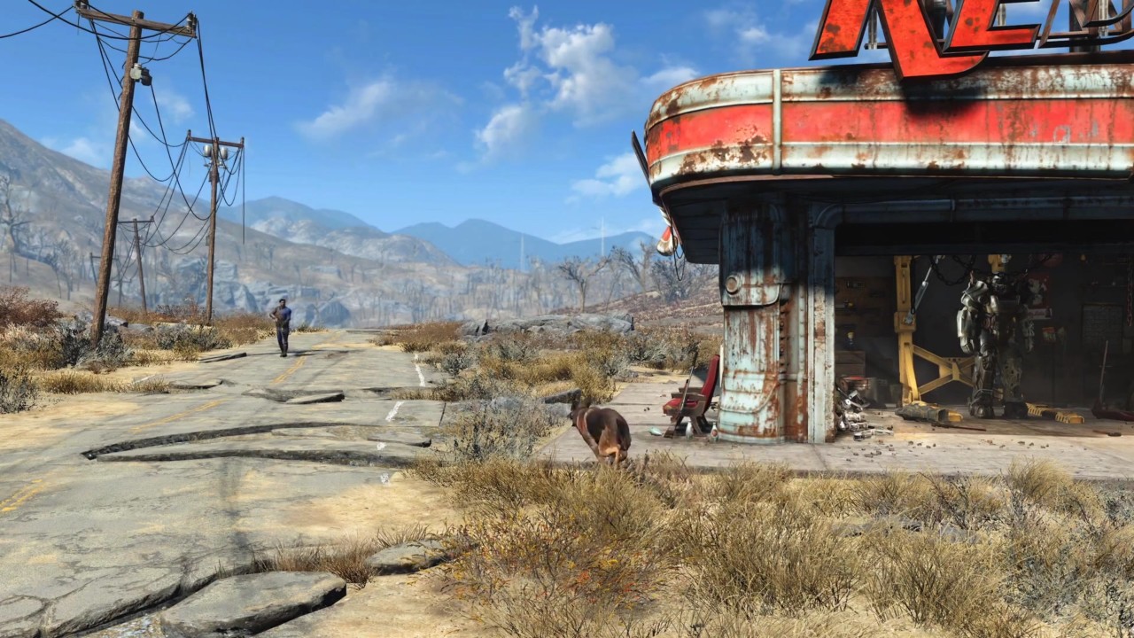 After Zoe had gutted the raiders of all of their gear and supplies it was time to sell some of this junk. As I continued down the road I came across my first trading post – about 4 hours into my journey. This particular trading post had been set-up in the halls of a long abandoned Diner. Unfortunately, the Diner was under attack by a group of bandits whom I dispatched (and looted) rather quickly. Not only did this earn me some free gear, experience and reputation with the local traders but it also opened up additional side-quests.  One of the most noticeable things about Fallout 4 from the brief time that I’ve spent with the game is that there are a number of side-quests that you can stumble upon just by speaking to the denizens of Boston, sometimes they don’t even have to talk to you directly. A citizen might mention the mysterious Institute or a long forgotten colony of ROBCO Robots and this will initiate a side-quest via your pipboy. It doesn’t give quests the most context or back-story but it does provide you with breadcrumbs of information for you to explore at your leisure which honestly adds to the game’s allure.