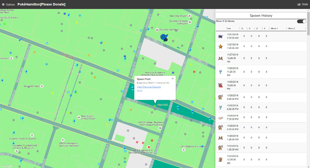 Speaking of tracking Pokémon in GO, a local website to track Pokémon has popped up in PokéHamilton. The map shows the spawn locations of Pokémon, how long until they will dissapear from the location, as well as the spawn radius. The site is in a very early Beta stage (and is down often) but it dead on accurate from my playtesting experience.